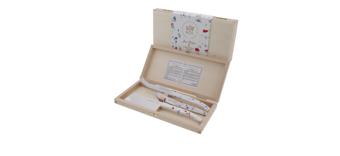 - a Jean Dubost Laguiole® stainless steel knife or Sense handle (blue, white, red)